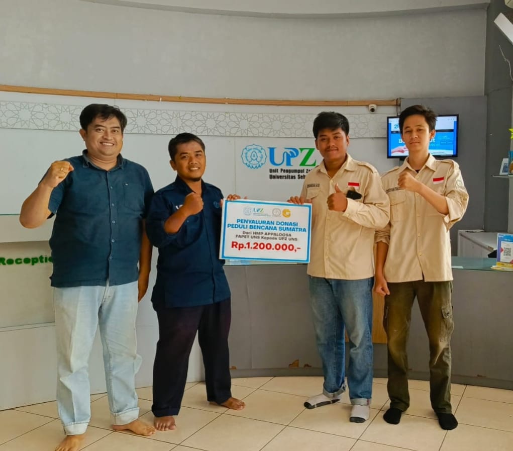 Surakarta — Unit Pengumpul Zakat Universitas Sebelas Maret (UPZ UNS) menerima donasi kemanusiaan dari Himpunan Mahasiswa Program Studi (HMP) Appaloosa, Fakultas Peternakan UNS, sebagai bentuk kepedulian terhadap bencana yang melanda wilayah Sumatra. Penyerahan donasi dilakukan pada Rabu, 10 Desember 2025, dengan total kontribusi sebesar Rp 1.200.000.