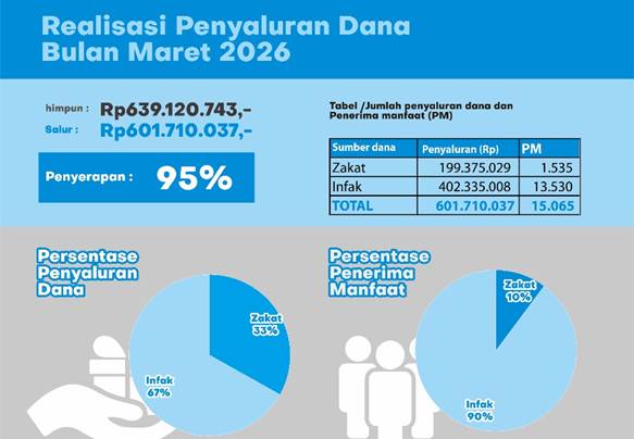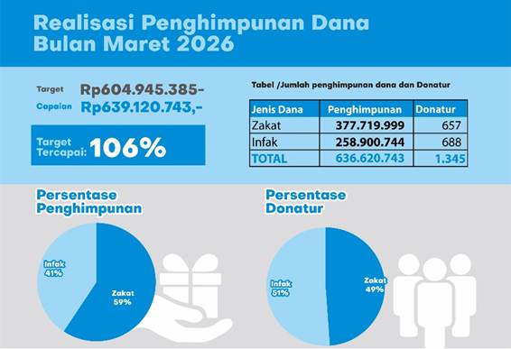 Sepanjang Maret 2026, UPZ UNS berhasil menghimpun dana sebesar Rp639.120.743, melampaui target Rp604.945.385 atau mencapai 106%. Capaian ini tidak hanya mencerminkan keberhasilan fundraising, tetapi juga meningkatnya kepercayaan publik—terutama sivitas akademika UNS—terhadap gerakan zakat, infak, dan sedekah yang dikelola secara amanah dan berdampak.